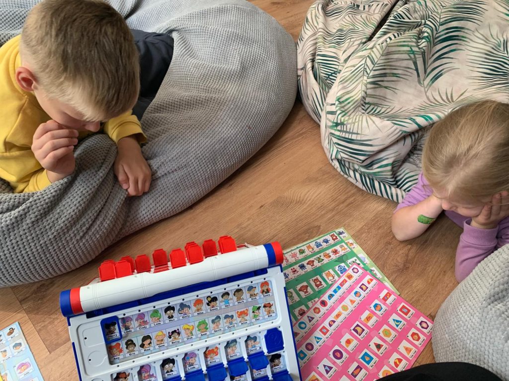 Ale od początku. Z doświadczenia wiem na przykład, że pierwsze miesiące zajęć bywają miesiącami ciszy. Nie walczymy ze znajomością słówek albo je brakiem, a raczej ze … strachem. Strachem przed błędami, przed wygłupieniem się, przed niedogadaniem się. Pozwalam dzieciom obserować jak ja robię błędy, jak się wygłupiam albo jak się nie zrażam, gdy mnie nie rozumieją od razu i nie robię z tego problemu. Na tym etapie dzieci głównie słuchają, starają się zrozumieć moje prośby, pytania i proste historyjki, które opowiadam w trakcie najróżnyjszych aktywności. Aktywności wybranych przez dzieci.